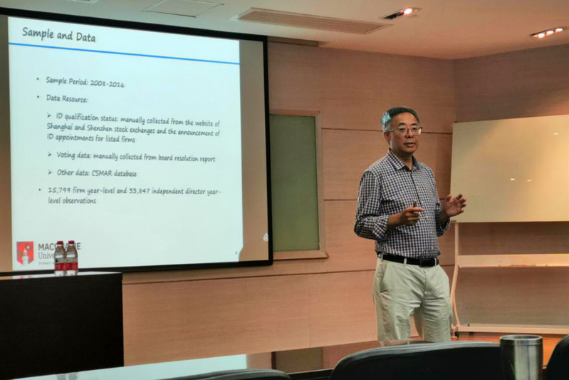 2019年5月28日下午,由上海财经大学会计学院和上海财经大学会计与财务研究院联合主办的学术报告会在会计学院206会议室召开,来自Macquarie University的Gary Gang Tian教授为大家带来了题为《Courtesy calls for reciprocity: Appointment of unqualified independent directors in China》的学术讲座。研究院董雅姝、何贤杰、黄俊、王苏明月、王翼虹、王刚、魏春燕、邹欢等研究员以及十多位博士生参与了讨论。