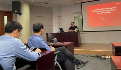 2025年7月15日下午,由上海财经大学会计学院主办的学术研讨会在学院206室召开。南加州大学马歇尔商学院(the University of Southern California Marshall School of Business)会计学教授黄德尊(T.J. Wong)应邀做客上海财经大学国际会计学院,发表题为“A Framework for Studying New Technologies and Accounting in Emerging Markets”的学术讲座。此次讲座吸引了众多师生参加,会场座无虚席,学院李增泉、靳庆鲁、阴慧芳、何贤杰等多位教师及博士研究生参与了交流。