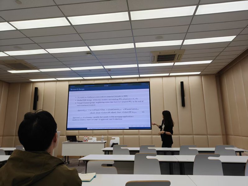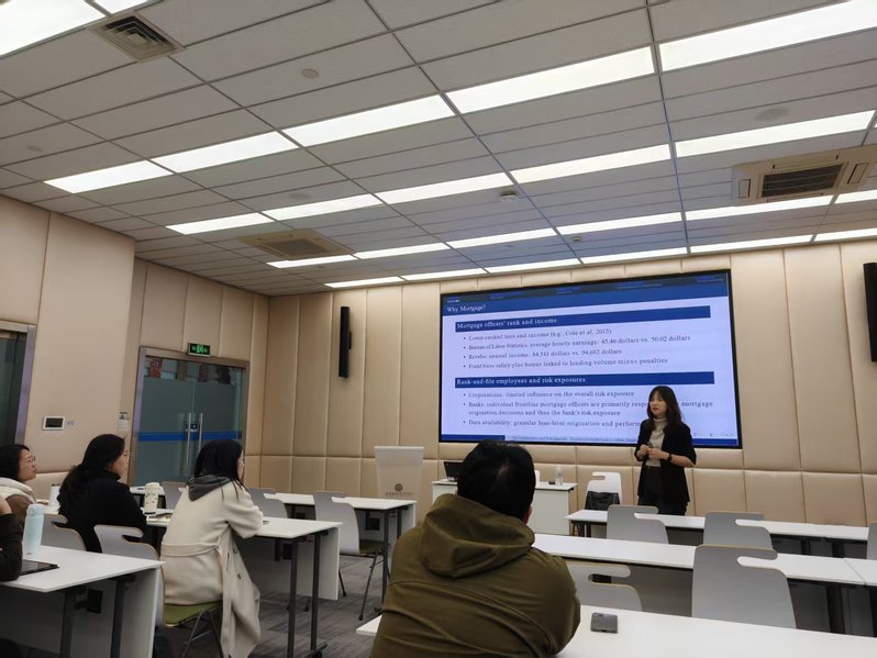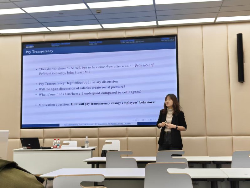 2025年11月25日下午,由上海财经大学会计学院主办的学术报告会在会计学院106室顺利举行。本次报告会特邀香港城市大学商学院王征教授,为大家带来题为“Pay Transparency and Risk Appetite: Evidence from Mortgage Lending Decisions”的学术讲座。本次报告由会计学院杨馨老师主持,学院董毅、韩维芳、侯青川、叶建芳、赵子夜等多位教师及博士研究生参加了本次学术活动。