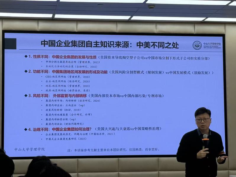讲座开始,曹教授从企业资源配置机制切入,指出现代经济中大量关键资源是在企业内部而非市场中完成配置,因而理解集团与子公司结构是研究公司治理的重要基础。他强调,与美国企业集团以业务分部化为主不同,中国企业集团普遍采纳母子公司体系,这一制度差异深刻塑造了中美治理模式的根本分歧。