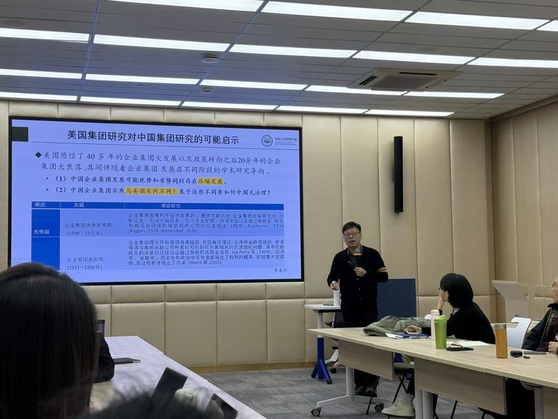2025年12月9日下午,由上海财经大学会计学院主办的学术研讨会在学院106室举行。中山大学管理学院曹春方教授受邀作题为《中国集团治理自主知识构建管窥》的学术报告。学院刘浩、唐松、周波、黄俊、侯青川等多位教师及博士研究生参与交流。